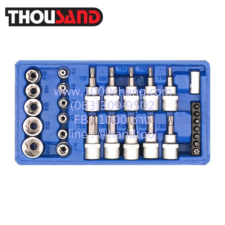 ★ หัวจับดอกขัน : 6 mm ★ ดอกขัน 6 mm : T10, T15, T20, T25, T27, T30, T40 (ปลายหัวมีรู) ★ ลูกบล็อก 1/4″ : E4, E5, E6, E7, E8 ★ ลูกบล็อก 3/8″ : E12, E14, E16, E18, E20 ★ ลูกบล็อกเดือยโผล่ 3/8″ : T10, T15, T20, T25, T27 (ปลายหัวไม่มีรู) ★ ลูกบล็อกเดือยโผล่ 1/2″ : T30, T40, T45, T50, T55 (ปลายหัวไม่มีรู)