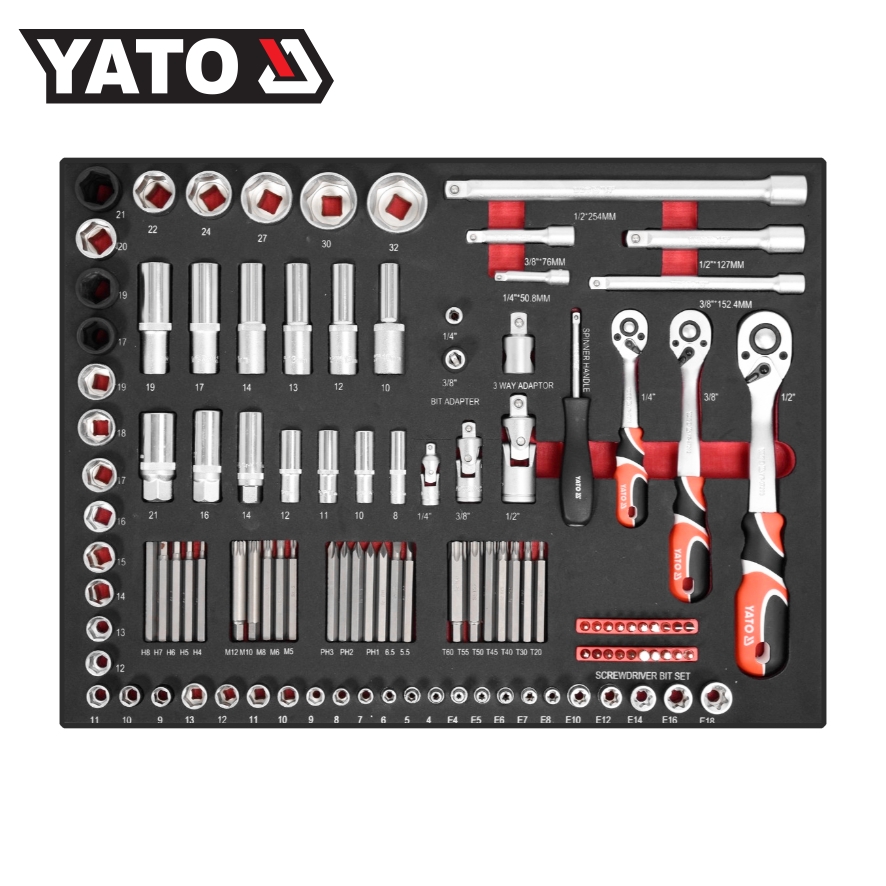 YATO YT-55280 ตู้เครื่องมือ 3 ลิ้นชัก + เครื่องมือ 162 ตัวชุด